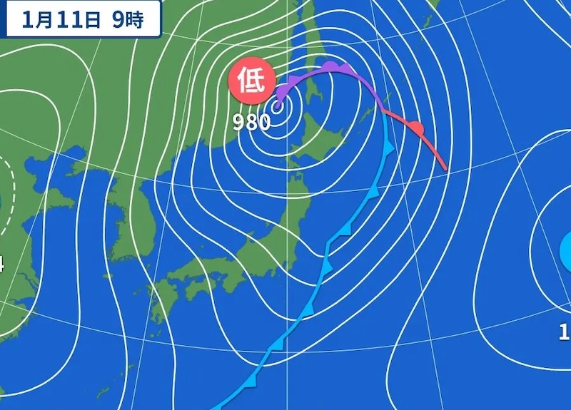 今朝から吹き始めた南風でこれからサイズアップする予報です 風が吹いているのが沿岸に近い事と、前線の通過後は西か北西の風に変わりますので、サイズダウンは早めになりそうです 明日の予想気圧配置 |