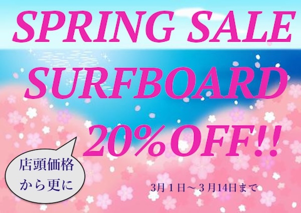 SURFBOARD が全て店頭価格から更に20%OFFでお買い得です!!