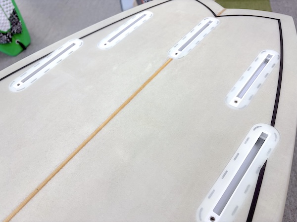 FISH TAIL 薄いダークグレーのダメージカラーが綺麗です 58000円 SPEC/5'4"×19"5/8×2"1/2 RAIL/ REGULAR BOTTOM/ SINGLE to VEE ROCKER/ MIDIUM DAMAGE/ ☆☆☆☆☆ FIN/ FUTURE 5 PLUG FISH TAILは回転性が高く、ターンがスムーズに行えます フィンはボックスはFUTUREの5で、TWIN FIN で回転性を高くしたり、3本を全て付けて、しっかりとしたターンを楽しんだりとバリエーションも豊富です 定価75900円 |